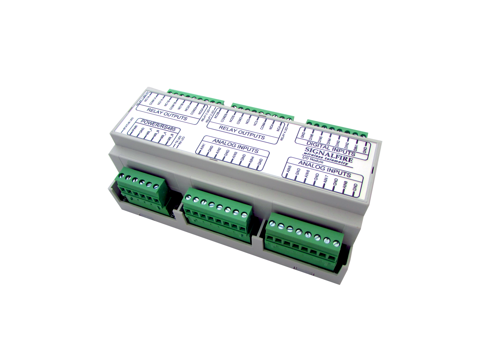 - 8 Analog inputs. 4-20mA / 1-5V switch selectable (16 bit) with units of measure scaling and threshold monitoring